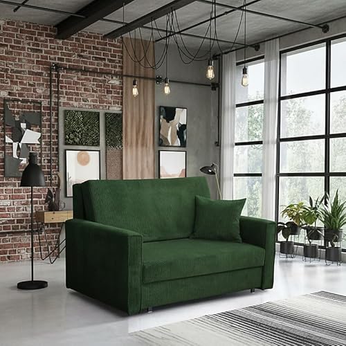 YuuSsea Sofa Bed 2 Seater with 2 Cushions, Dark Green Velvet, Convertible for Living Room, Guest Room, Compact Sofa Bed with Wooden Frame