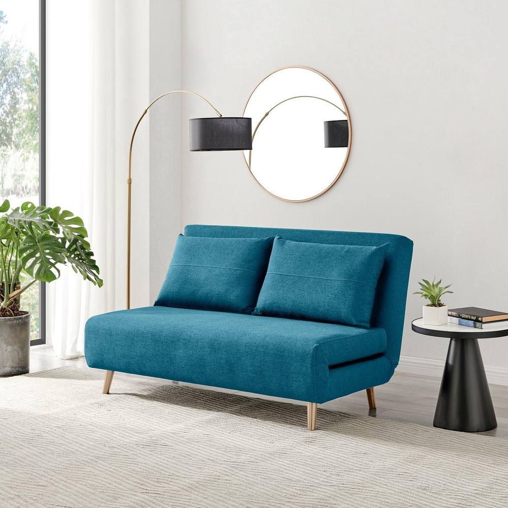 FurnitureboxUK Bobby Compact Futon Inspired Sofa Bed Upholstered In Soft Fabric in Blue | Size: Medium