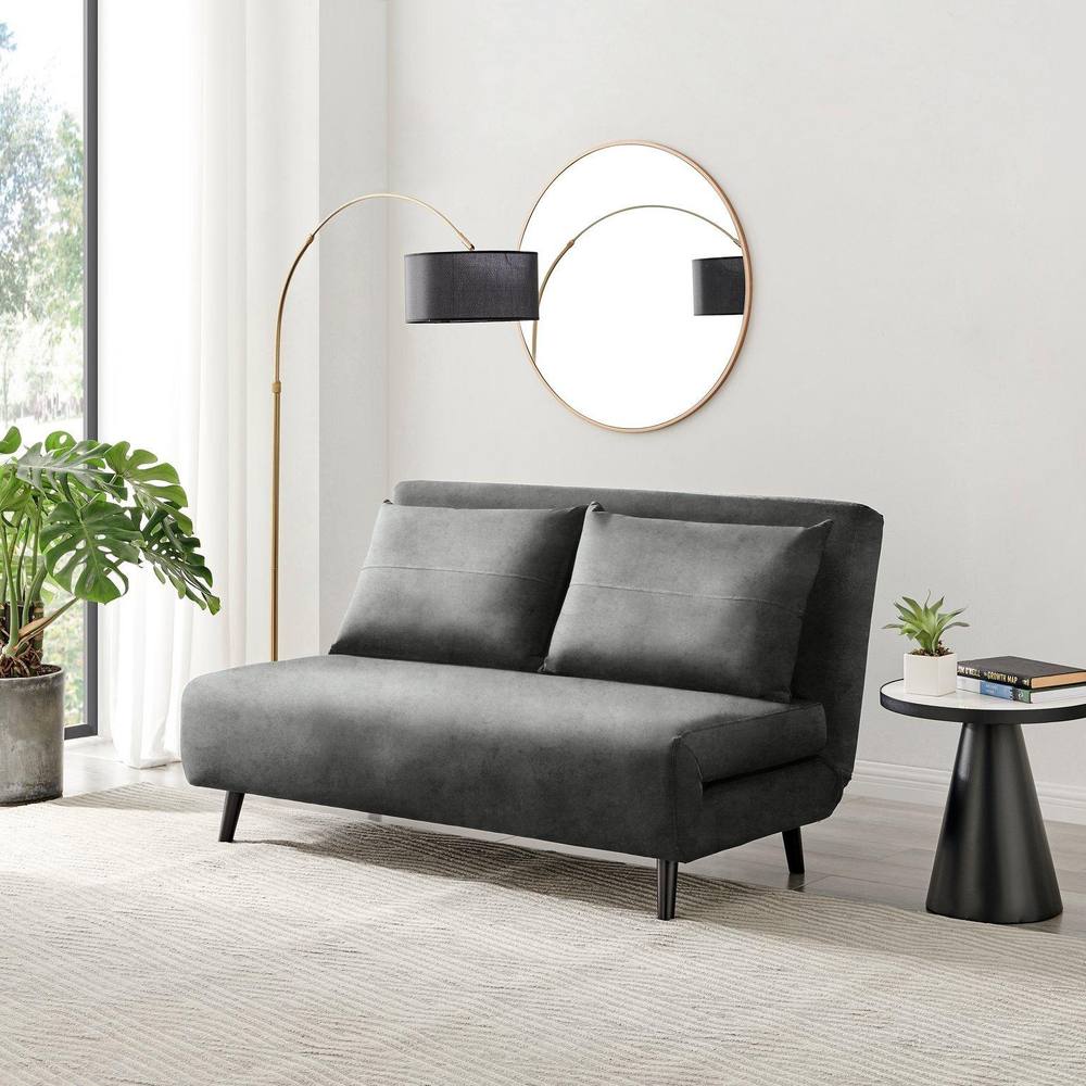 FurnitureboxUK Bobby Compact Futon Inspired Sofa Bed Upholstered In Soft Velvet in Grey | Size: Medium