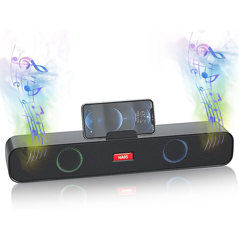 Compact PC Soundbar, RGB Desktop Speaker with Vibrating Diaphragms and Volume Knob, for Gaming Consoles and Musical Instruments
