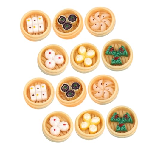 HONITANO 12Pcs Miniature Steamed Buns Steamer Decor Resin Food for Dollhouse Realistic Chinese Style Simulation Compact Lightweight Play Food Decoration