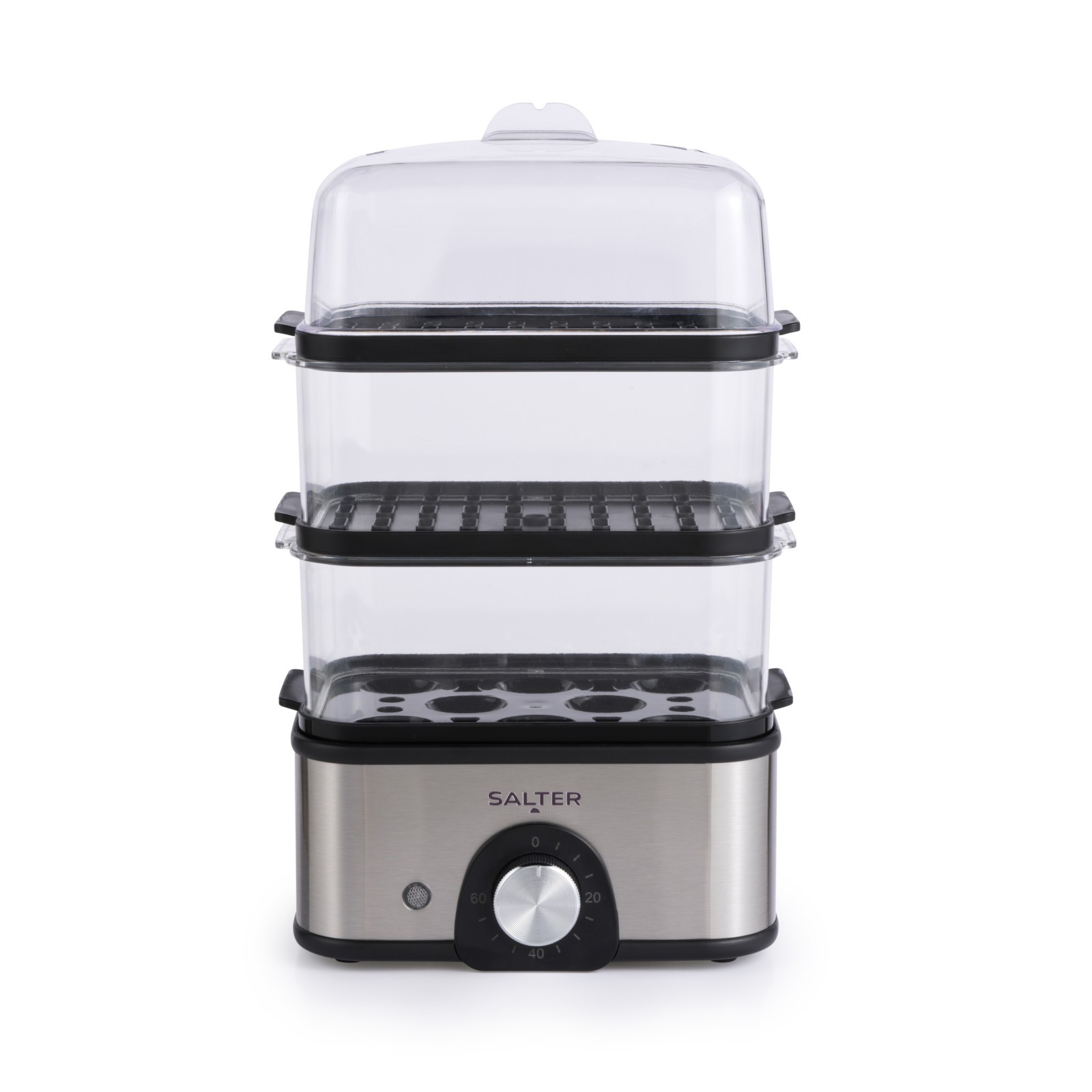 Salter EK5885 3-Tier Food Steamer, Compact Multi-Cooker, 3 Steam Baskets, Electric Egg Cooker with 8-Egg Capacity, Vegetable Steamer, 60-Minute Timer,