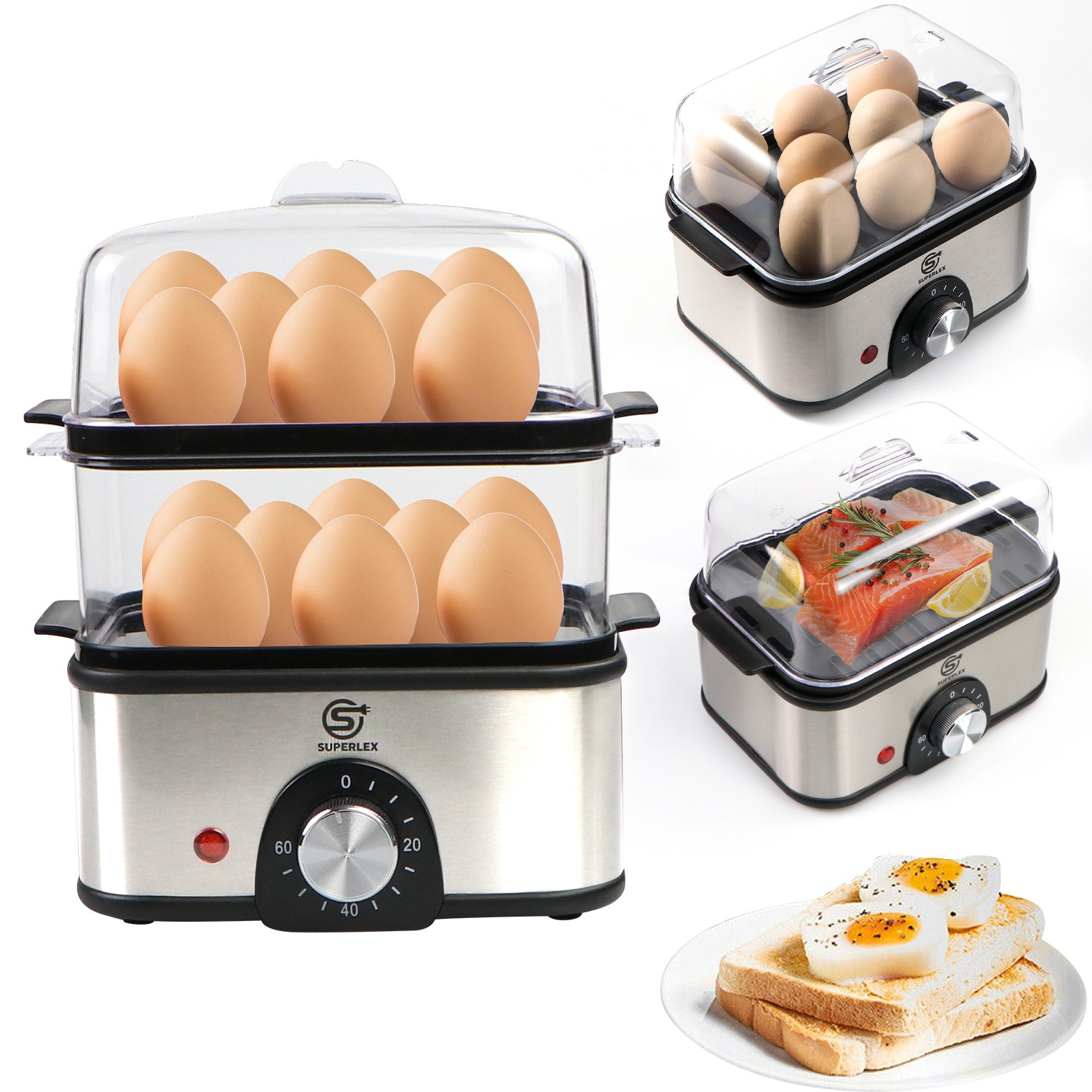 SUPERLEX Compact Electric Food Steamer Egg Cooker Boiler Poacher Easy Clean 500W