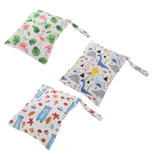 BESPORTBLE 3pcs Cartoon Print Wet Dry Bags with Secure Zippers Compact Organizer for Travel Beach Pool Daycare Stroller Diaper Storage