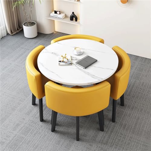 BritToyze Round Table and Chairs Set Compact Kitchen Table and Chairs Dining Table Soft Backrest Seat Modern Style Furniture Waterproof Seat (Yellow)