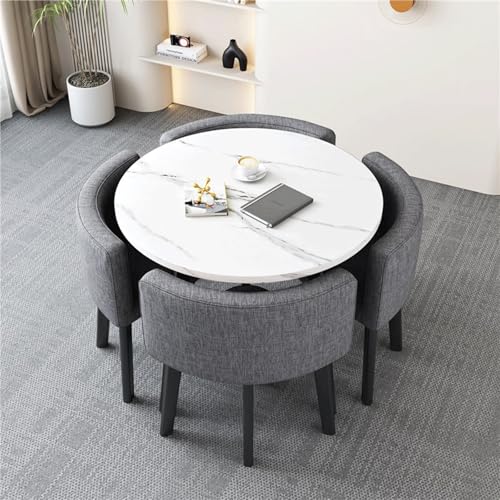 BritToyze Round Table and Chairs Set Compact Kitchen Table and Chairs Dining Table Soft Backrest Seat Modern Style Furniture Waterproof Seat (Grey Linen Chairs)