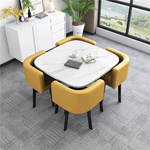 BritToyze Round Table and Chairs Set Compact Kitchen Table and Chairs Dining Table Soft Backrest Seat Modern Style Furniture Waterproof Seat (Square yellow)