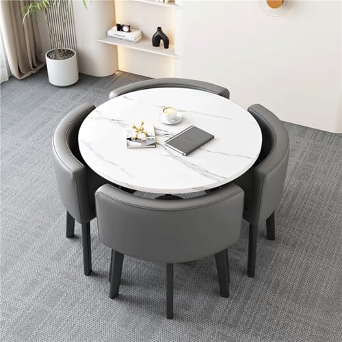 BritToyze Round Table and Chairs Set Compact Kitchen Table and Chairs Dining Table Soft Backrest Seat Modern Style Furniture Waterproof Seat (Grey Pu Chairs)