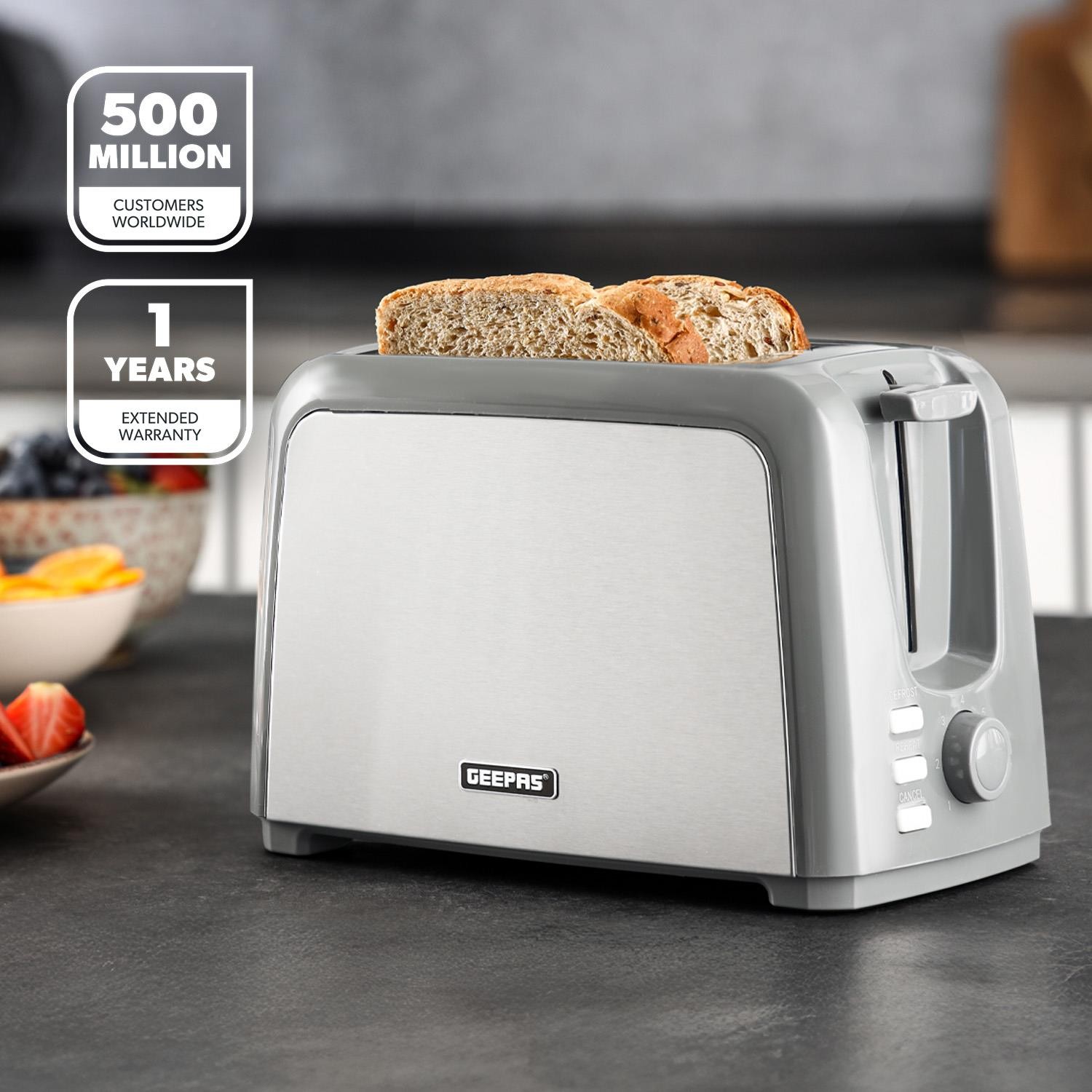 GEEPAS 2 Slice Compact Bread Toaster with 7 Level Browning Control 750W, Silver