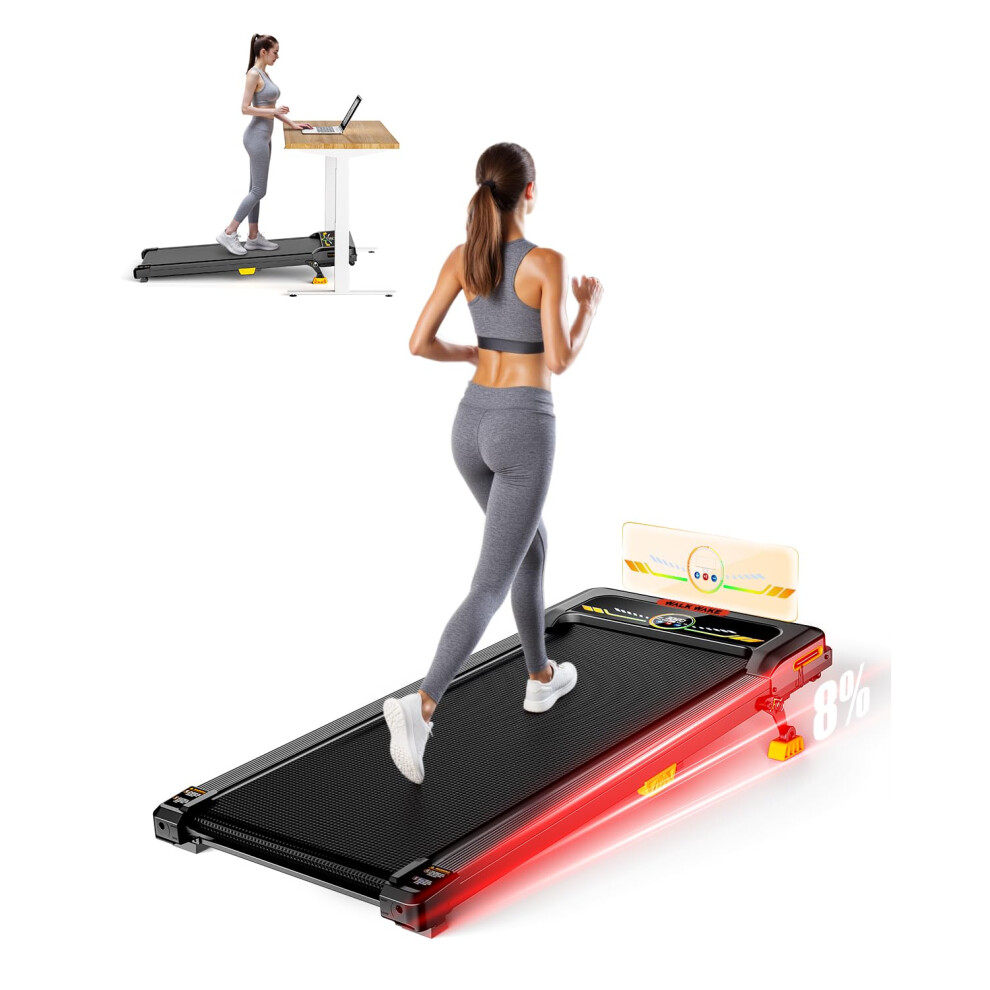 WalkDate Walking Pad Treadmill with 5% Incline, Compact Under Desk Treadmill for Home and Office, Portable Running Machine with LED Display Remote Control, 330lbs Capacity 2.5HP Low Noise Black Red