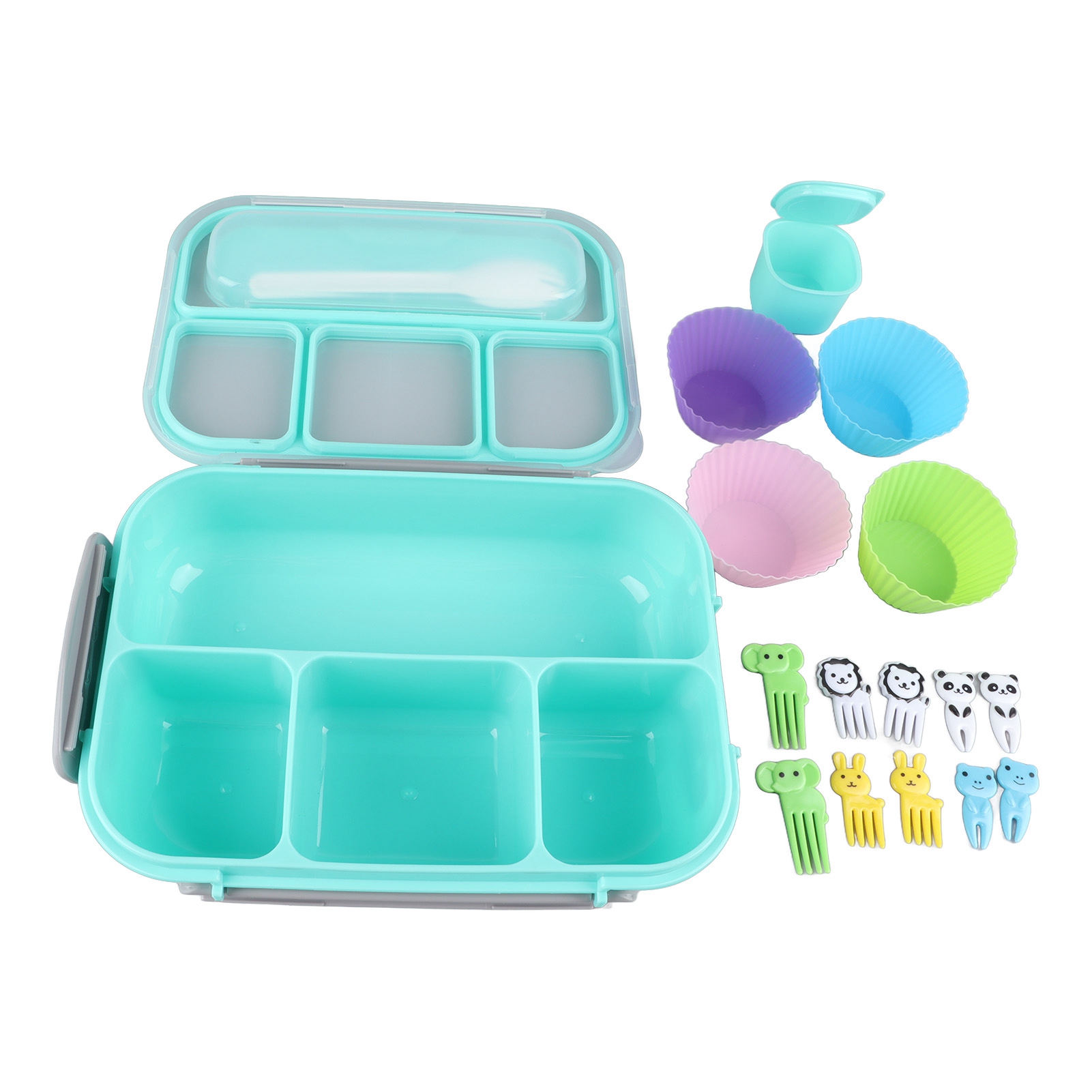 Green 16PCS Set Box Reusable 1300ml 4 Compartment Adult Lunch Box Wit OU