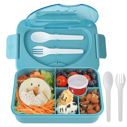 MaMix Bento Box Adult Lunch Box, Lunch Boxes for Kids, 5 Compartment Lunch Box Containers for Adults, Meal Prep Containers Reusable & Leakproof (Blue)