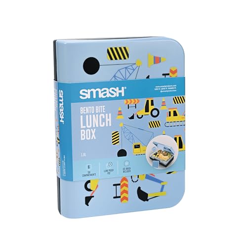Smash Kids Bento Bite Lunch Box – Digger| 6 Compartment Bento-Style Lunch Box with Ice Brick & Leak-Proof Snack Pot | Removable Tray & Durable Outer Case, Blue