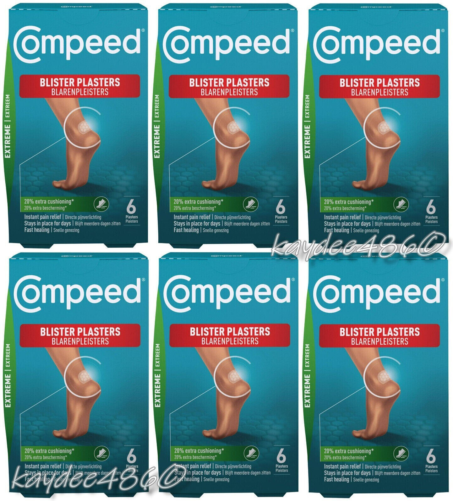 6 Packs Compeed Blister Extreme Pain Relief (36 Plasters) Heel Medium Size 2027