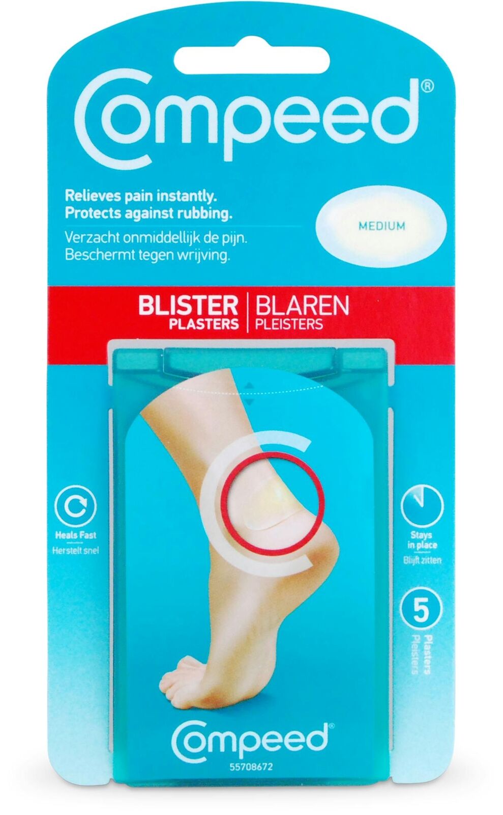 Compeed Blister Plasters Medium 5 Pack - Hydrocolloid Foot Treatment - Heal Fast