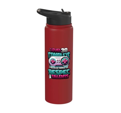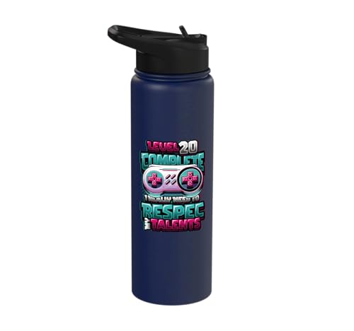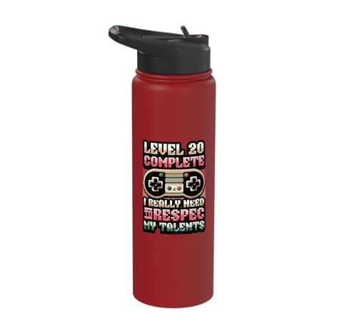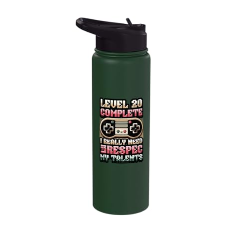 Level 20 Complete Respec Talents Gaming 20th Gamer Birthday Stainless Steel Insulated Water Bottle