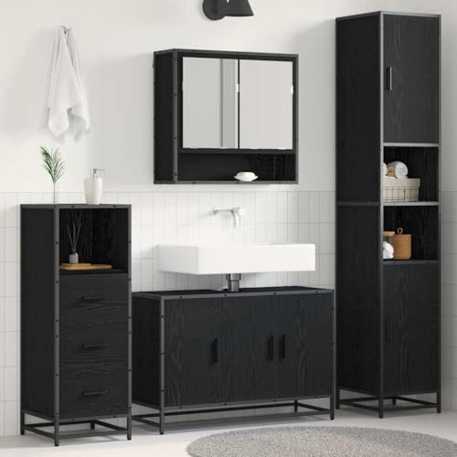 Zeehear 4-Piece Bathroom Furniture Set Sonoma Oak Wood Composite Sink Cabinet with Metal Frame, Mirror Cabinet, Bathroom Cabinets, Modern Bathroom