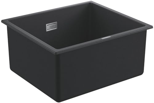 GROHE K700U - Quartz Composite Sink Undermounted with Overflow (1 bowl 417 x 366 x 203 mm, Included: Waste Kit, Basket Strainer Waste, Mounting Set), Dimensions: 457 x 406 mm, Granite Black, 31653AP0