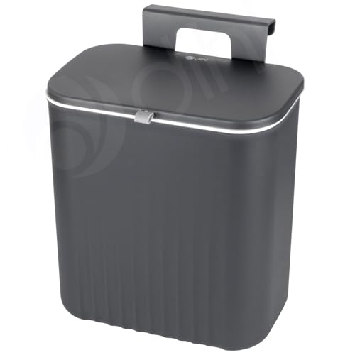 Dihl 9 Litre Hanging Trash Bin with Lid, Wall Mounted Garbage Can Kitchen Compost Can, Plastic Rubbish Wastebasket for Cupboard, Cabinet Door, Bathroom, Bedroom, Offices - Anthracite