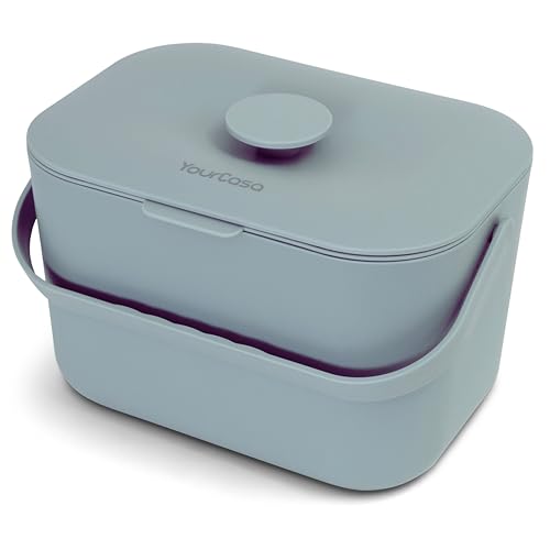 YourCasa Kitchen food waste bin caddy - ergonomic handle - countertop small compost counter with lid trash can - 5L Dishwasher Safe - Odour Proof Inner Sieve indoor recycling composter (Charcoal Grey)