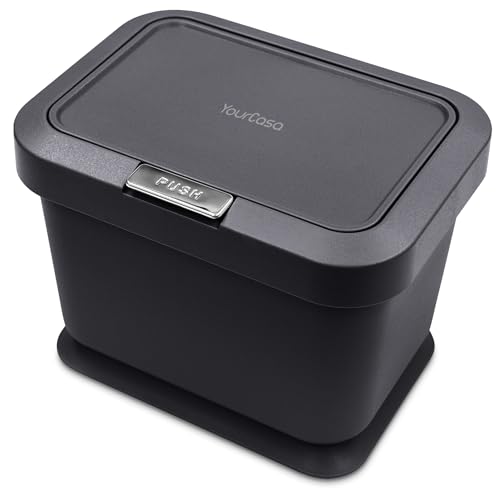 YourCasa compost bin 5L- kitchen food waste caddy - lid opens with push button - countertop small counter trash can - Odour Proof container - indoor recycling composter with non slip base (Black)