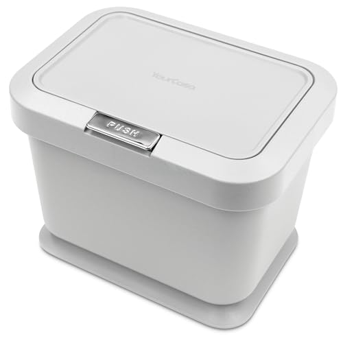 YourCasa compost bin 5L- kitchen food waste caddy - lid opens with push button - countertop small counter trash can - Odour Proof container - indoor recycling composter with non slip base (Grey)