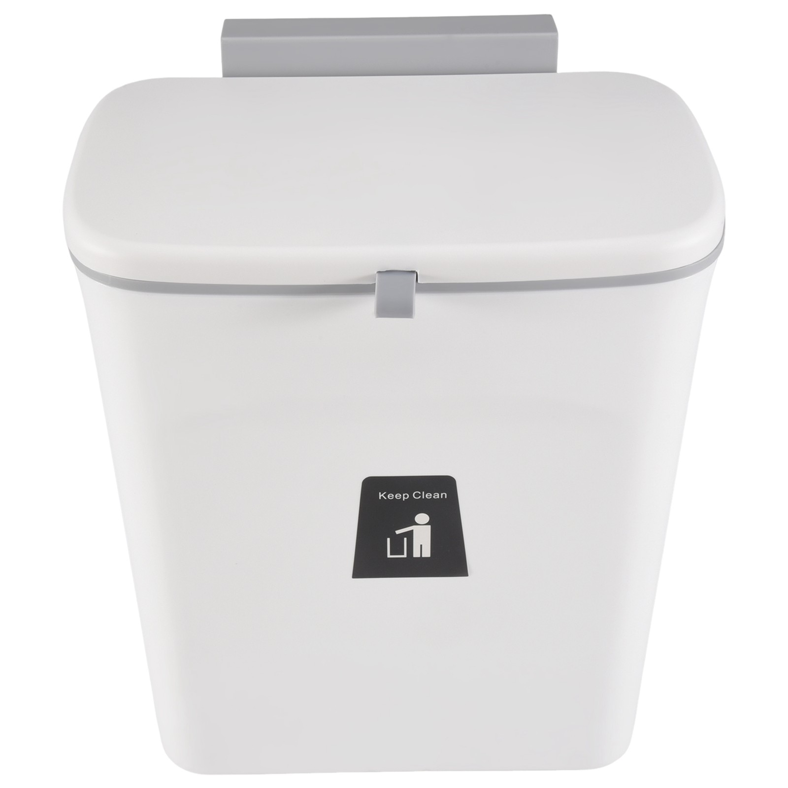 Dihl 9 Litre Hanging Trash Bin with Lid, Wall Mounted Garbage Can Kitchen Compost Bin, Plastic Rubbish Bin Wastebasket for Under Cupboard, Cabinet Door, Bedroom, Offices - Grey