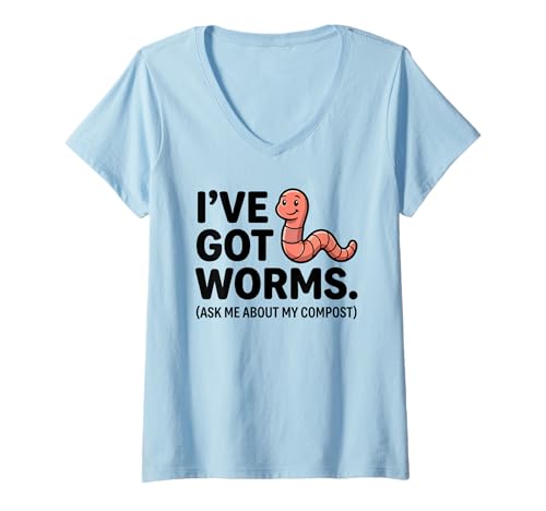 Womens Ive Got Worms Ask Me About My Compost Funny Gardening Pun V-Neck T-Shirt