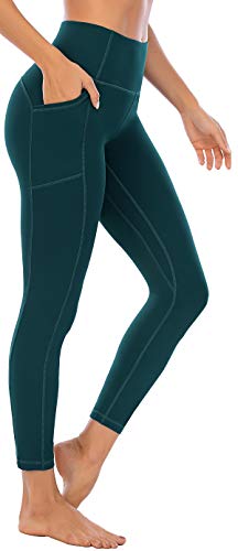 OVRUNS High Waist Gym Leggings for Women Yoga Pants with Pockets Workout Running Compression Leggings for Women - Tidewater Teal - L