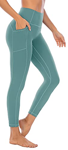 OVRUNS High Waist Gym Leggings for Women Yoga Pants with Pockets Workout Running Compression Leggings for Women - Tidewater Teal - XS
