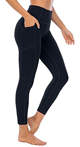 OVRUNS High Waist Gym Leggings for Women Yoga Pants with Pockets Workout Running Compression Leggings for Women - Dark Black - L