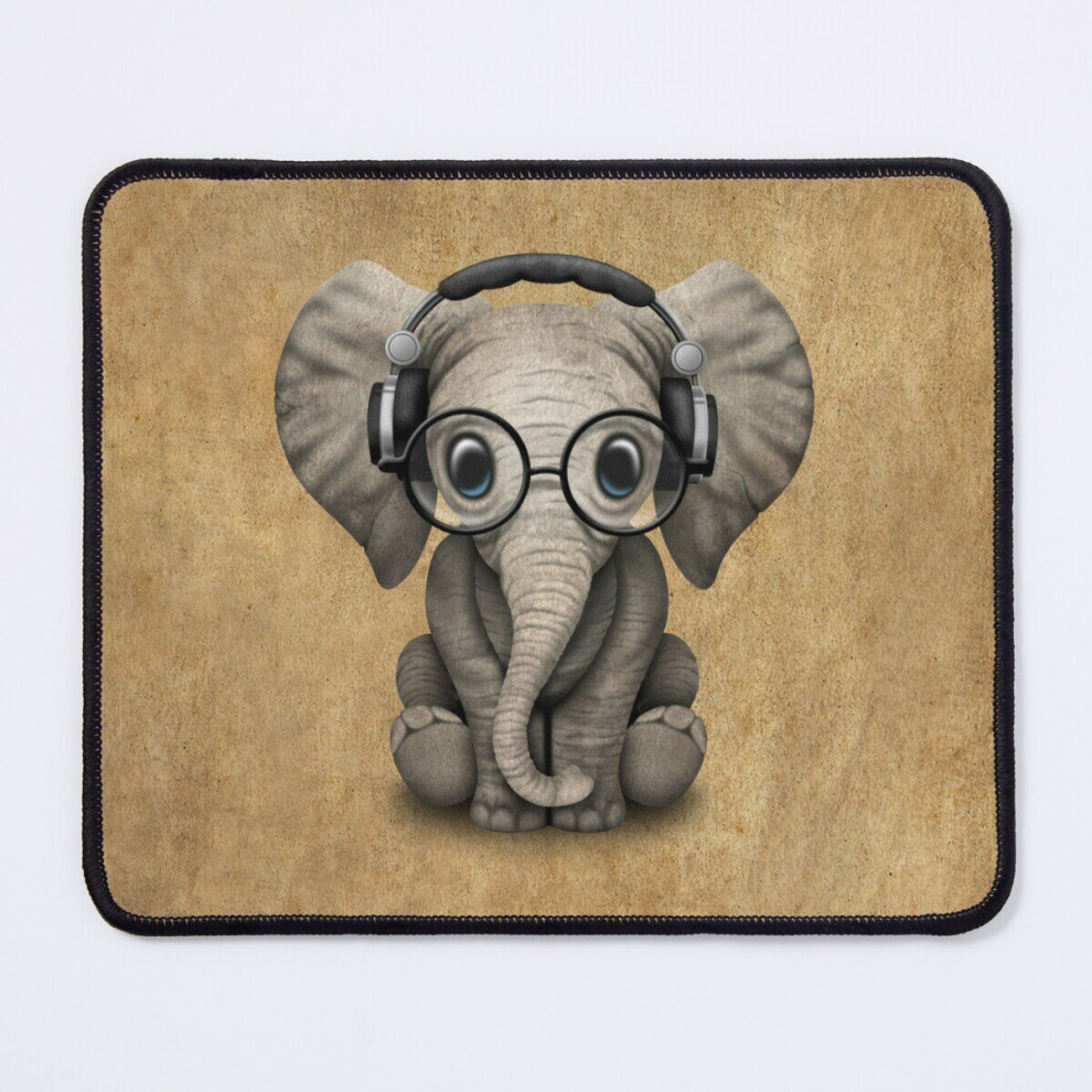 Mouse Pad Cute Baby Elephant Dj Wearing Headphones and Glasses 11.8 x 9.8 inch Computer Mat Gaming Office Mousepad