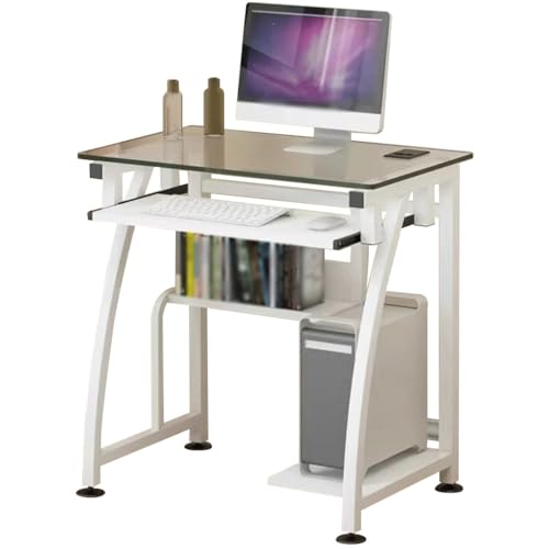 Gaming Desk Compact Bedroom Study Desk - Small Tempered Glass Computer Table With Keyboard Tray & Storage Shelf, Space-Saving Design For Home Office(White)