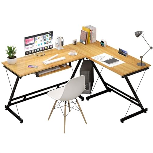 DXYDZSWD Corner Table, Home Computer Desk with Keyboard Tray, (MDF+Steel Frame) Writing Desk, for Corner, Living Room, Bedroom, Study Room(E)