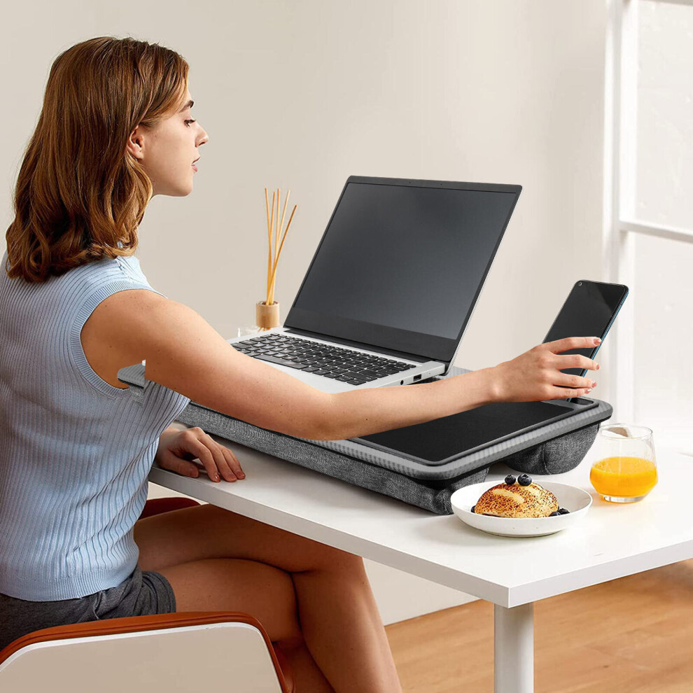 Lap Desk Laptop Tray Computer Table Pillow Cushion Mouse Pad Phone Slot Grey