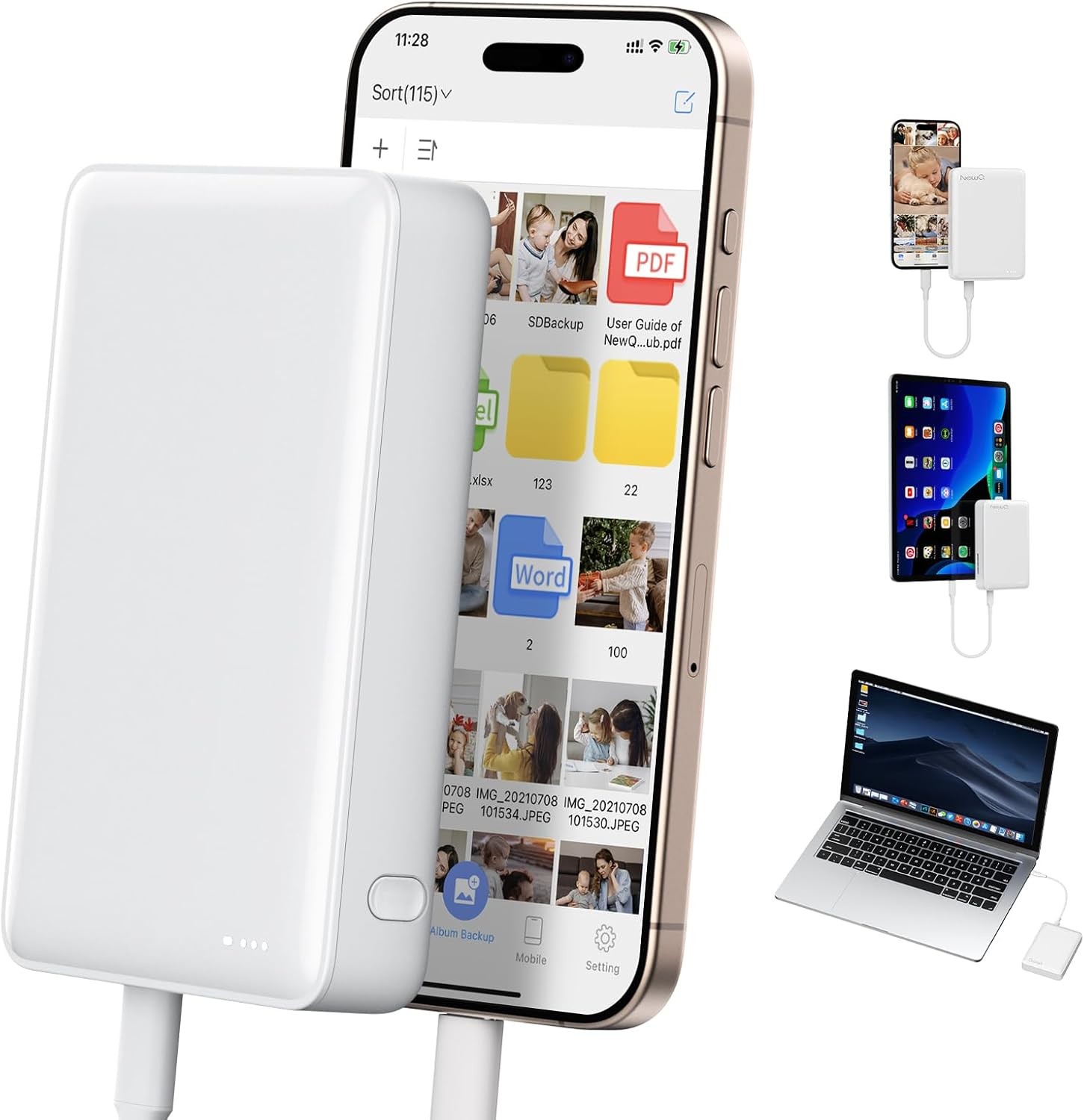 NEWQ External Hard Drive for Phone & Computer: Photo Memory Stick for iPhone, iPad, MacBook, Compatible with iOS & Android | Backup Picture | Video |(512GB, White)