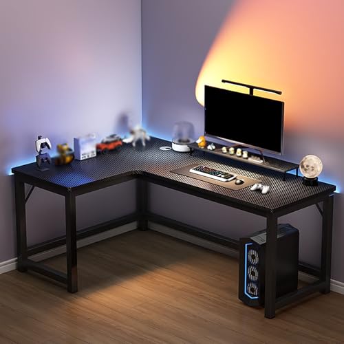 YAGAMAXUNZ L Shaped Gaming Desk,Corner Desk Computer Workstation,Carbon Fiber Finish,Monitor stands,for bedrooms,gaming rooms,offices 140x100cm