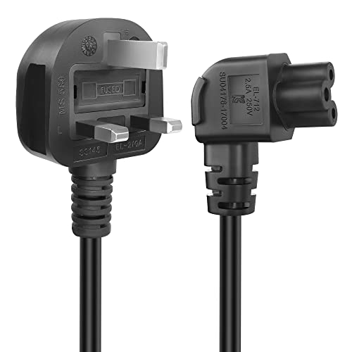 GELRHONR 90°C5 Cloverleaf Mickey Mouse Power Cable, 3Pin BS 1363 to C5 AC Power Cord,Cloverleaf Lead for Laptop PC Monitors,Computer, Printer, Scanners-1.5M/4.9Ft (Righ Angle C5)