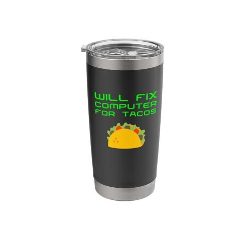 Will Fix Computer for Tacos Funny Tech Support Laptop Repair Stainless Steel Insulated Tumbler