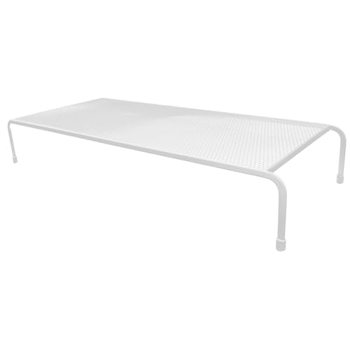 Alipis Metal Mesh Monitor Stand Riser for Desk – White Single-layer Extended Computer Screen Riser with Desktop Storage for Office and Home Use