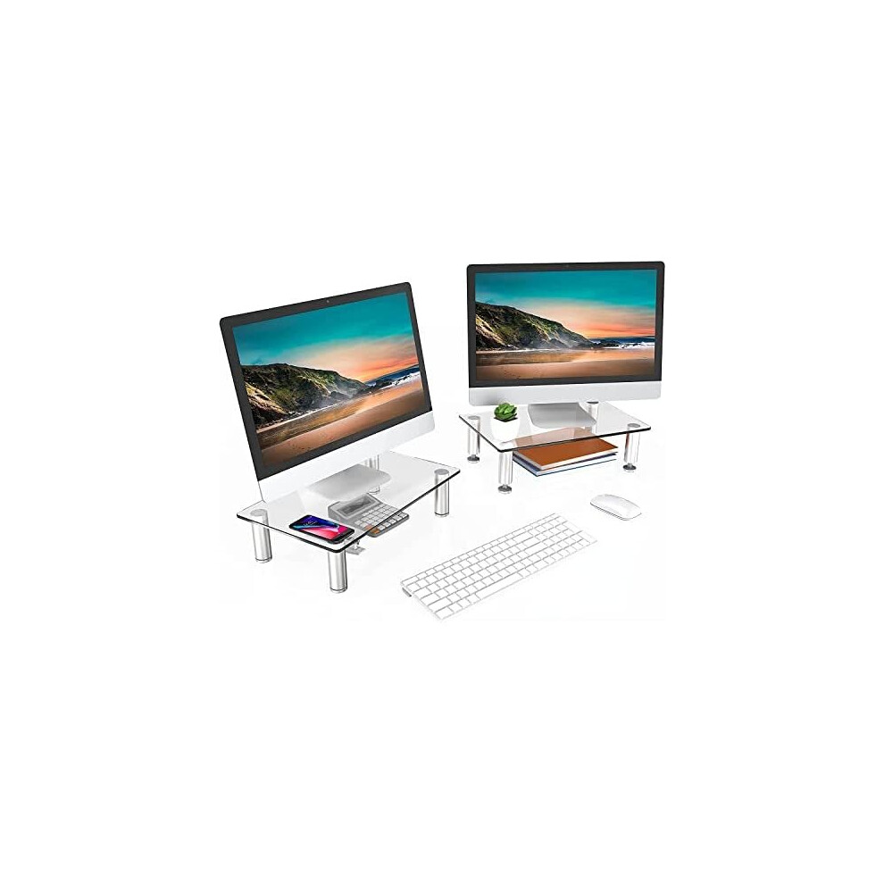 Large Monitor Stand Glass Height Adjustable PC Laptop Computer Screen Riser, Hom