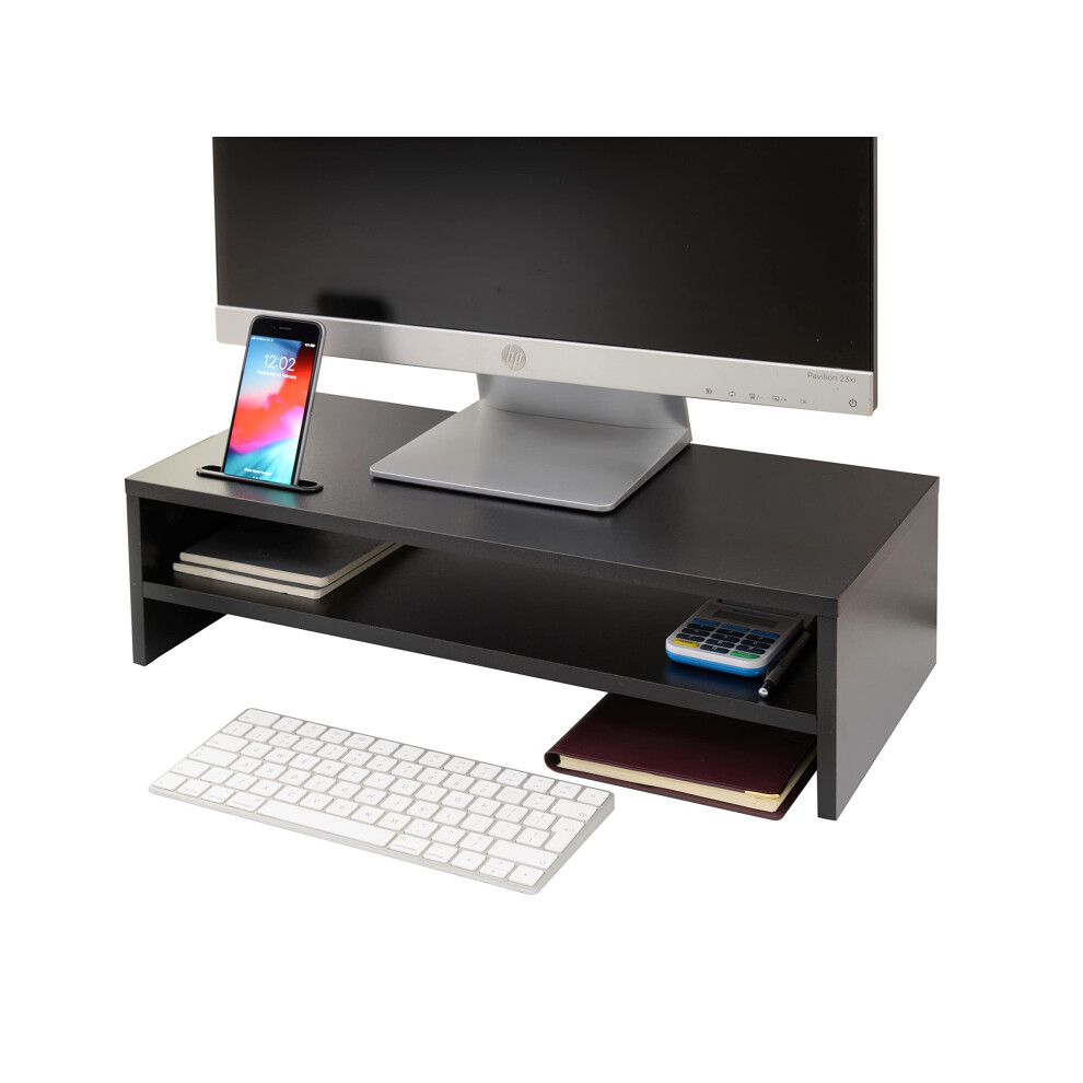 Black Wooden Monitor Two Shelf Stand Computer Laptop TV Screen Riser Desk Organiser 54cm L x 24.5cm D x 14.4cm H (with