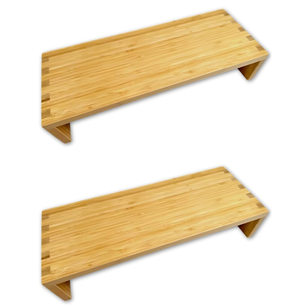 OSCO Bamboo Monitor Stand 2 pcs | Shelf | Computer Screen Riser | Printer Stand | Laptop Plinth | Full Size Keyboard Storage | Fully Assembled | H10 x