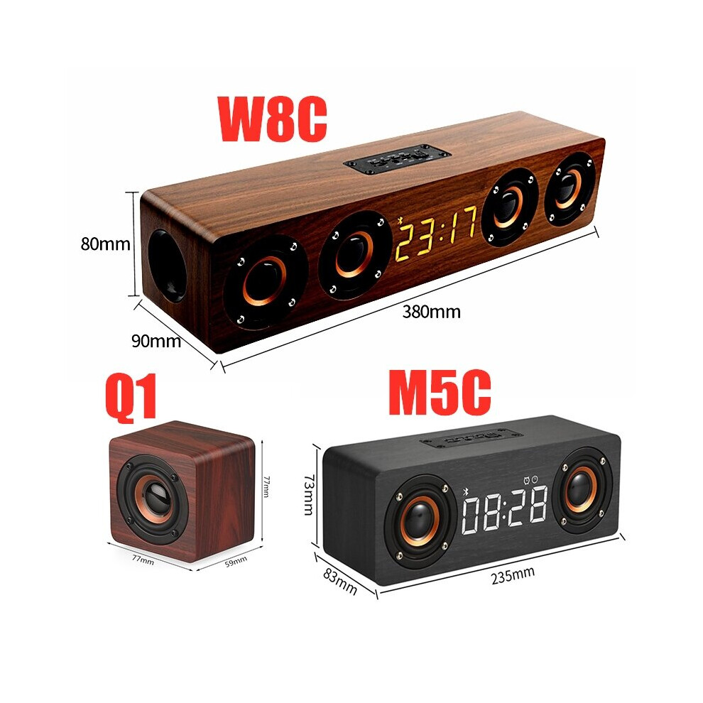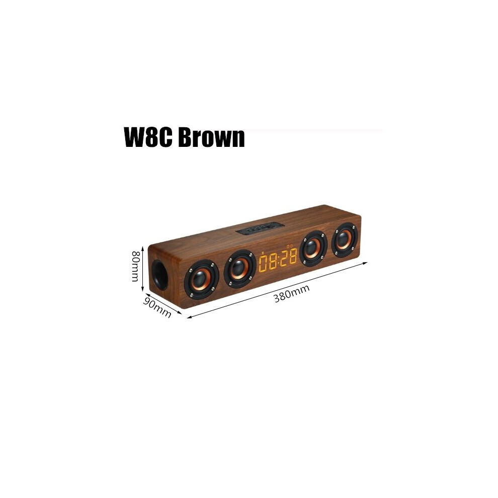 (a-W8C Brown) Wireless Bluetooth Speaker with Clock Computer TV Soundbar High-Power Subwoofer FM Radio Sound Box HIFI Stereo Music Center TF