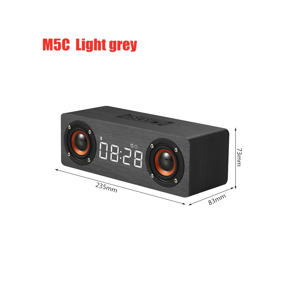 (a-M5C Light grey) Wireless Bluetooth Speaker with Clock Computer TV Soundbar High-Power Subwoofer FM Radio Sound Box HIFI Stereo Music Center TF