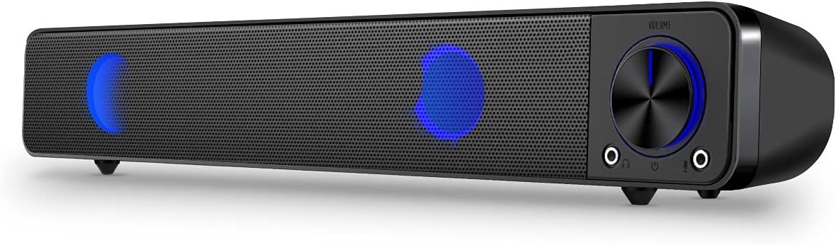 ?2021 Upgraded?Computer Speakers, 10W Wired Computer Sound Bar with 3 Light Modes, Enhanced Stereo USB Powered Soundbar Speakers One Button Contr