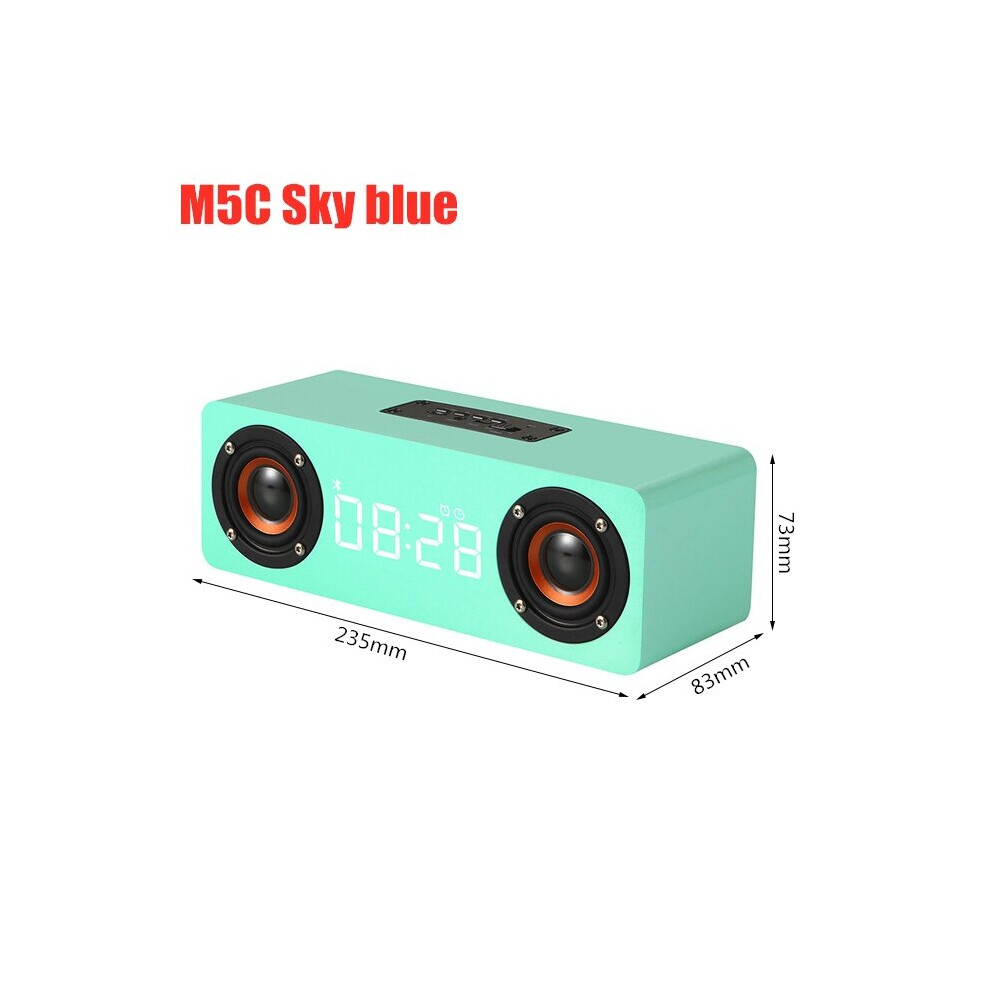 (a-M5C Sky blue) Wireless Bluetooth Speaker with Clock Computer TV Soundbar High-Power Subwoofer FM Radio Sound Box HIFI Stereo Music Center TF