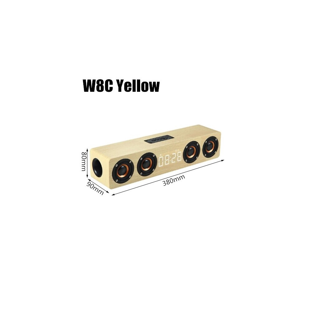 (a-W8C Yellow) Wireless Bluetooth Speaker with Clock Computer TV Soundbar High-Power Subwoofer FM Radio Sound Box HIFI Stereo Music Center TF