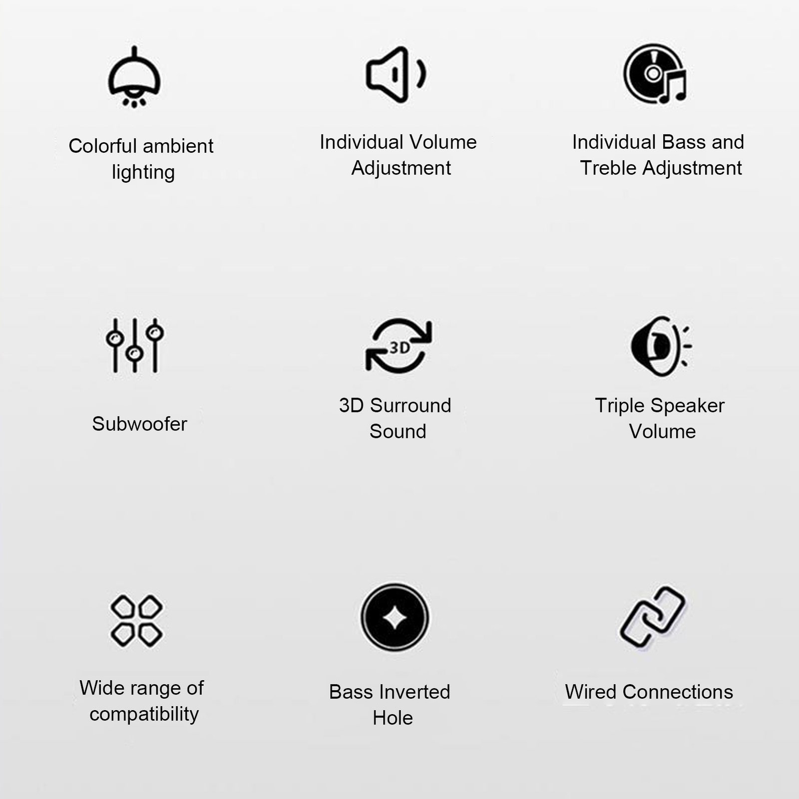 Computer Speakers, Desktop Subwoofer PC Speakers with RGB Lights, Clear Sound, Plug and Play