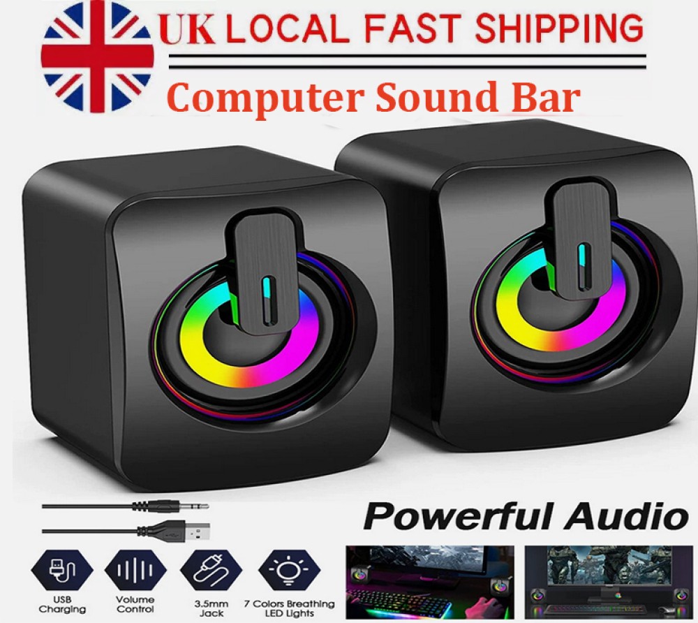 USB Wired LED Computer Speakers Stereo Bass Subwoofer 3.5mm for Desktop PC MP3